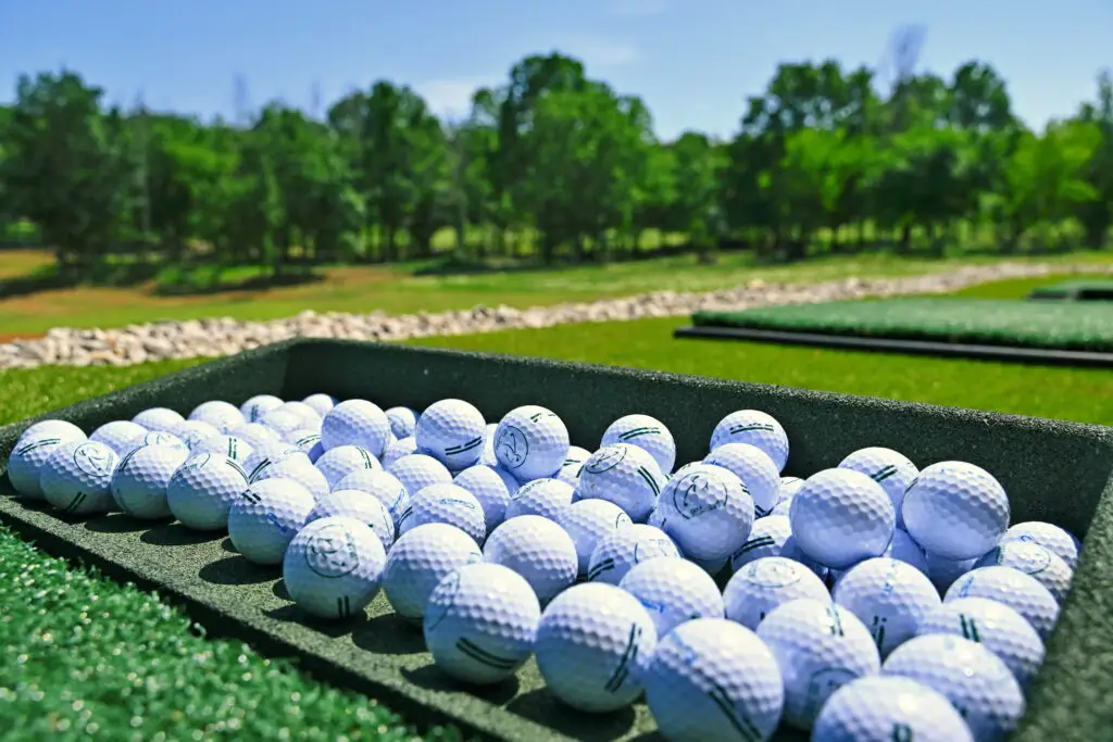 Pri vježbanju na našem golf vježbalištu koristimo takozvane “ driving range” loptice, specijalne loptice dizajnirane za vježbanje udaraca na driving rangeu. One lete 6 do 10% manje od klasičnih loptica i nešto su teže.